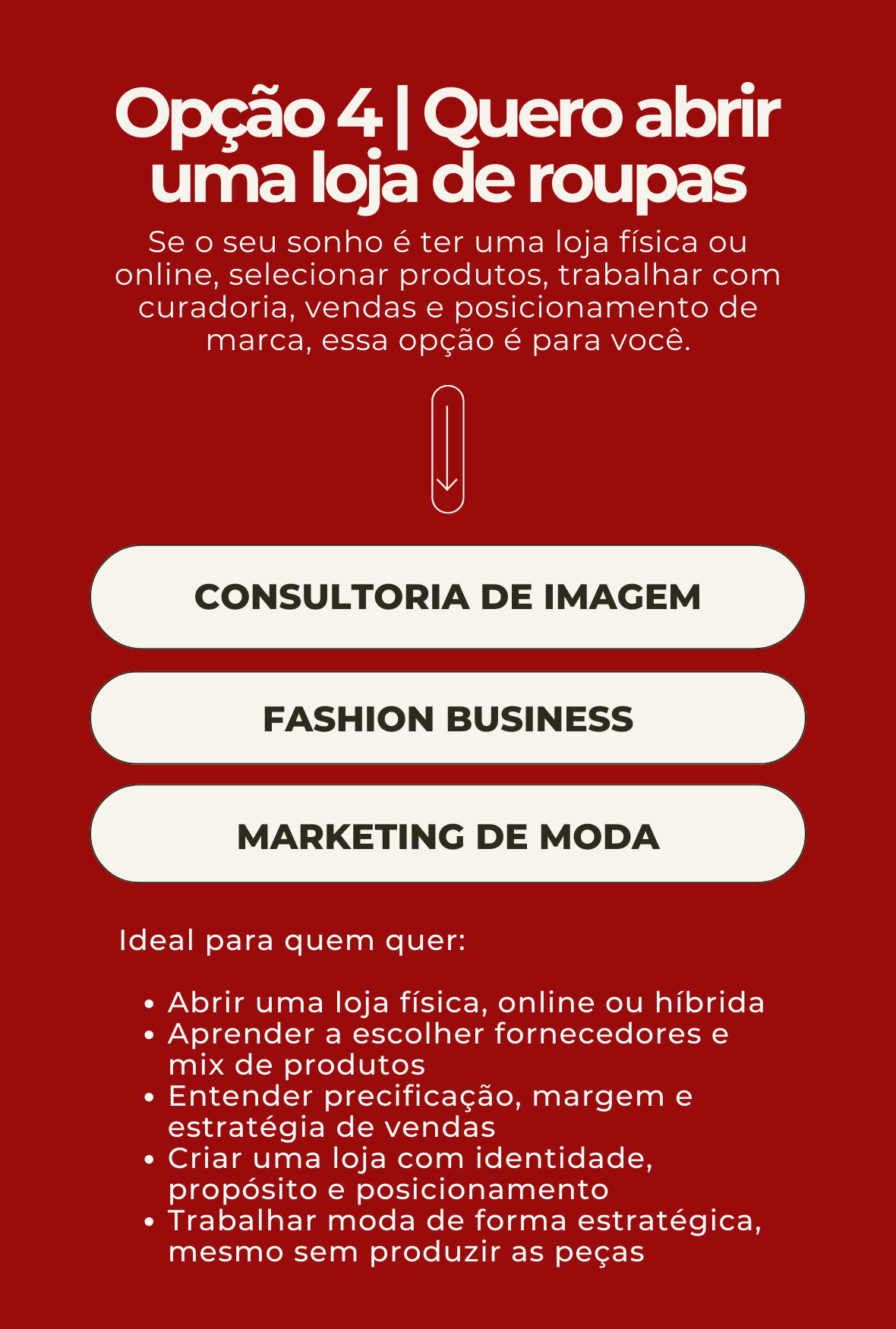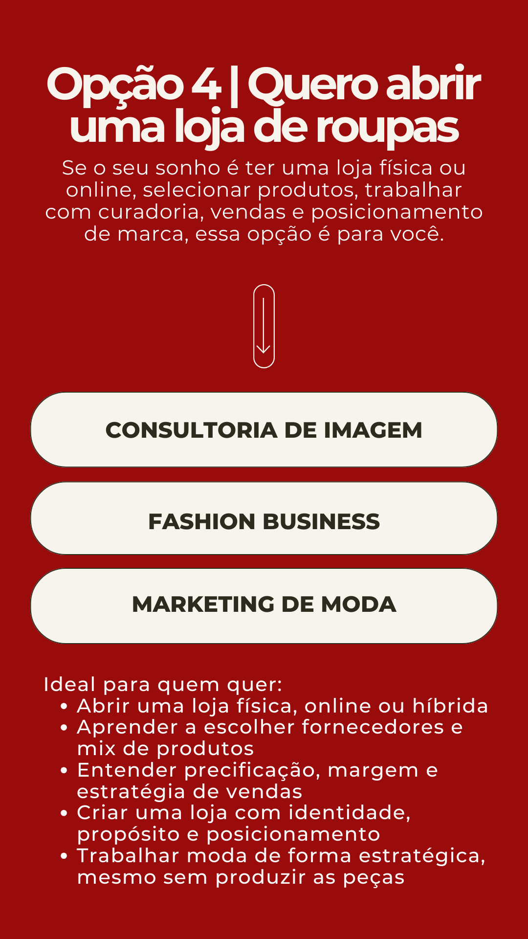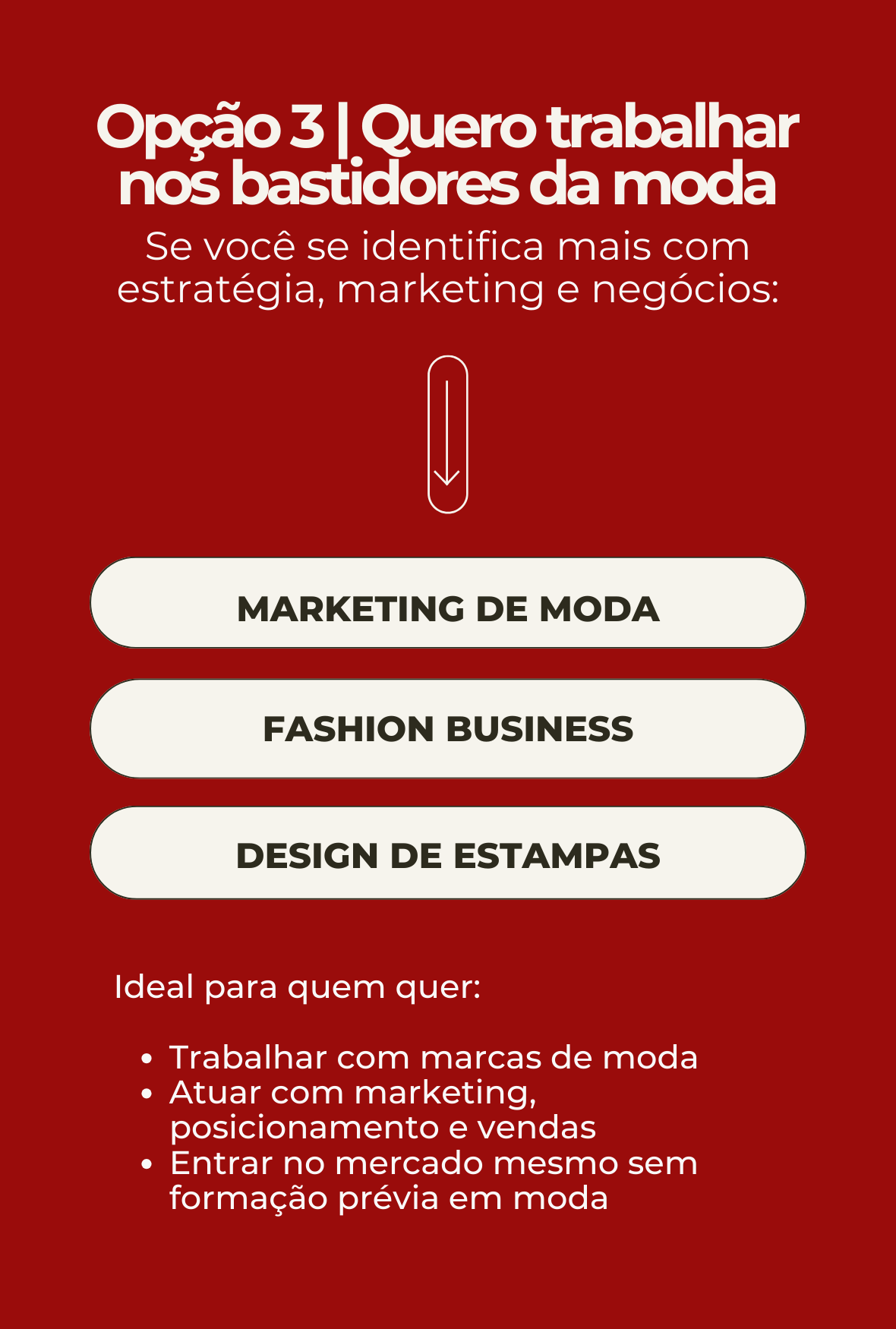 nós somos especialistas em transições de carreira para a moda, ajudando pessoas reais a transformarem paixão em profissão, com método, acolhimento e direcionamento.